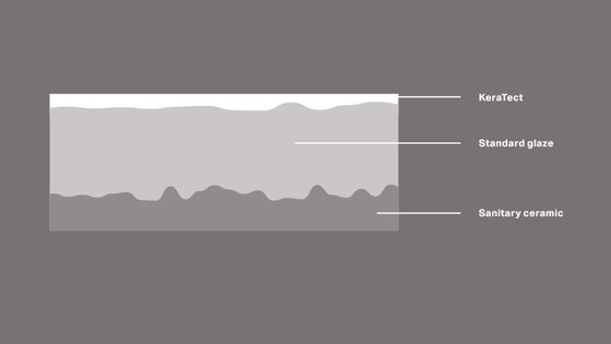 L’émail KeraTect® est le premier émail céramique garanti 30 ans. Il est présent dans des lavabos est cuvettes Keramag (appartenant à Geberit). La surface des produits réalisés dans ce matériau est lisse et non poreuse. Enfin, le KeraTect® résiste aux nettoyages intensifs (nettoyeur haute pression)… Si besoin il y a. En effet, le nettoyage est facile puisque les poussières et bactéries ne peuvent pas s’incruster. Par conséquent, moins de produits et de temps sont nécessaires pour l’entretien de la céramique.