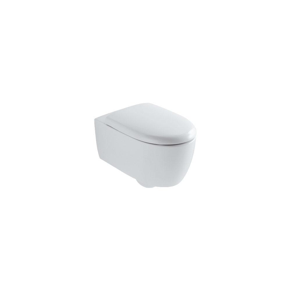 L'abattant associé est le modèle spécifique à cette cuvette, de forme bombée. Il est réalisé en matériau thermodur, solide, lisse et équipé de la fonction "softclose" : le couvercle et la lunette sont ralentis lors de leur descente, pour plus de sécurité et de tranquillité.